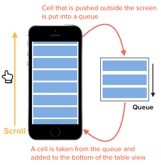 dequeueReusableCell。下面实现仅作学习演示,性能和线程安全等细节并未做完整处理。